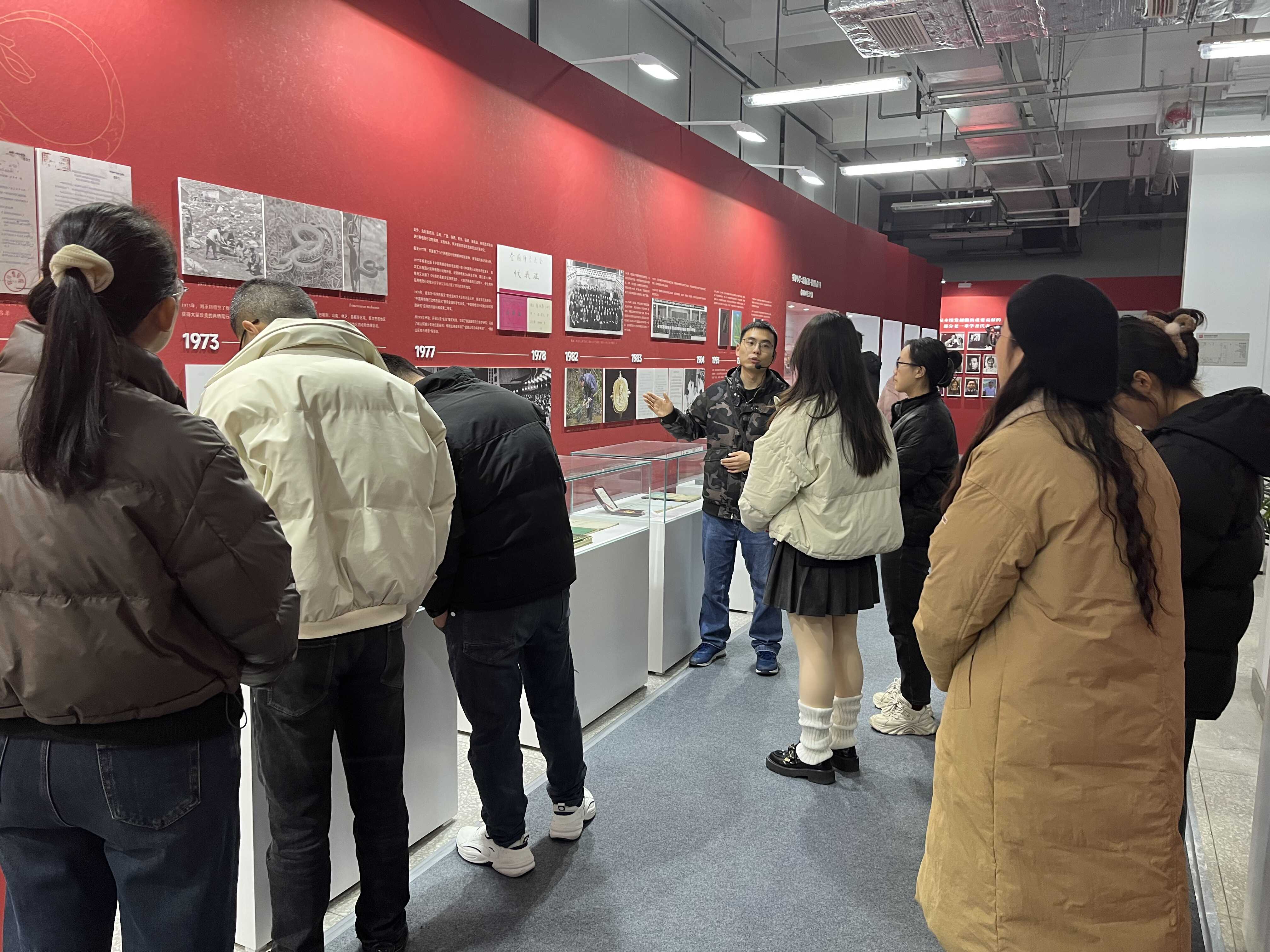 随后,党员们步入亚洲两栖爬行动物标本馆。讲解员详细的介绍了珍贵馆藏标本,党员们通过仔细观察和学习,对两栖爬行动物的分类体系、独特的形态特征以及复杂的生态习性有了更为全面深入的认知,进一步拓宽了专业视野。