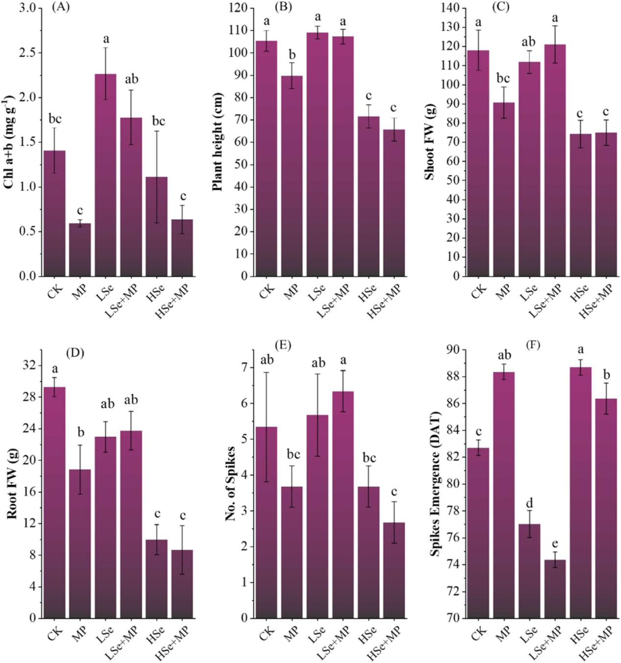 基于此,中国科学院成都生物研究所工程扰损生态系统格局过程与修复创新团队硕士研究生Fakhar Zaman在导师潘开文研究员的指导下,以青藏高原重要粮食作物青稞为实验材料,通过开展温室控制实验,系统探究了外源硒对高密度聚乙烯微塑料(MP)污染下的青稞生长及土壤线虫群落的影响,旨在揭示 Se 缓解微塑料对青稞生长负面影响风险的潜在机制。研究结果表明:(1)MP 显著抑制青稞生长并降低了土壤线虫群落丰度和多样性;(2)低Se 添加(10 mg·kg⁻¹)通过降低脱落酸、过氧化氢和丙二醛含量,提高顺式玉米素和茉莉酸水平,同时增加脲酶、脱氢酶和碱性磷酸酶等土壤酶活性,有效改善植物的激素平衡、氧化应激状态及养分吸收能力;(3)Se添加改变了线虫功能群结构。具体而言,低Se添加条件下,土壤线虫以食细菌线虫为主,而高 Se(50 mg·kg⁻¹)添加,则以植食性线虫为主。总体而言,低剂量Se添加通过重构土壤线虫营养功能群,优化土壤生态结构与功能,并协同增强植物生理抗性,有效缓解微塑料诱导的植物和土壤线虫胁迫,为在微塑料污染背景下提升农田生态系统的功能、维持土壤健康和促进作物粮食安全提供了新的理论依据。