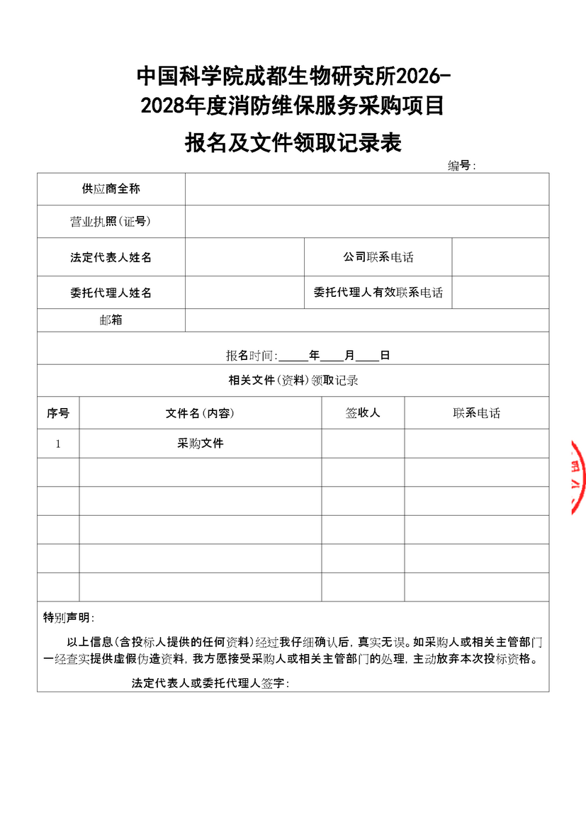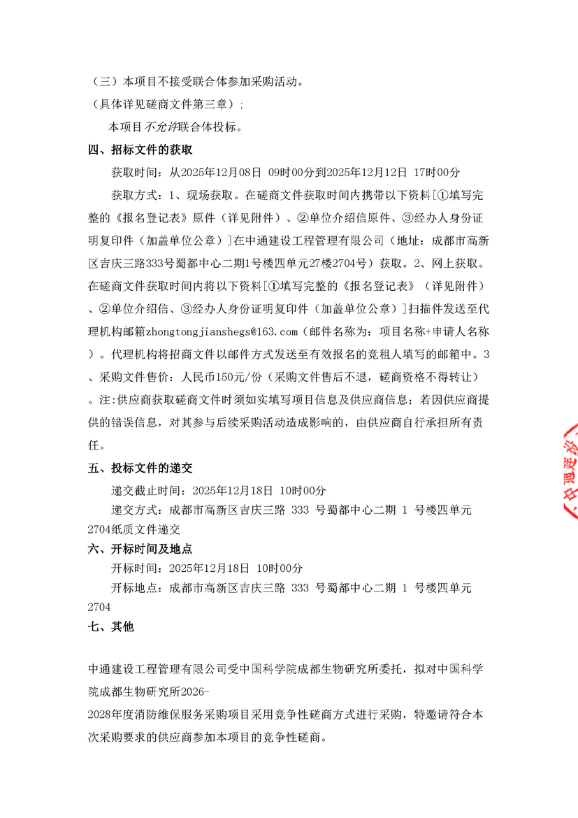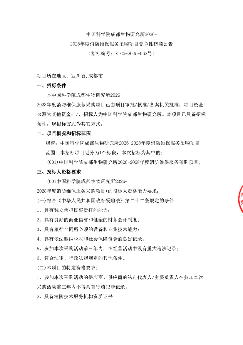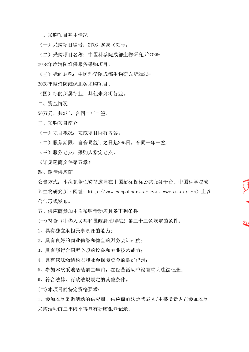中国科学院成都生物研究所2026年—2028年度消防维保服务采购项目竞争性磋商公告