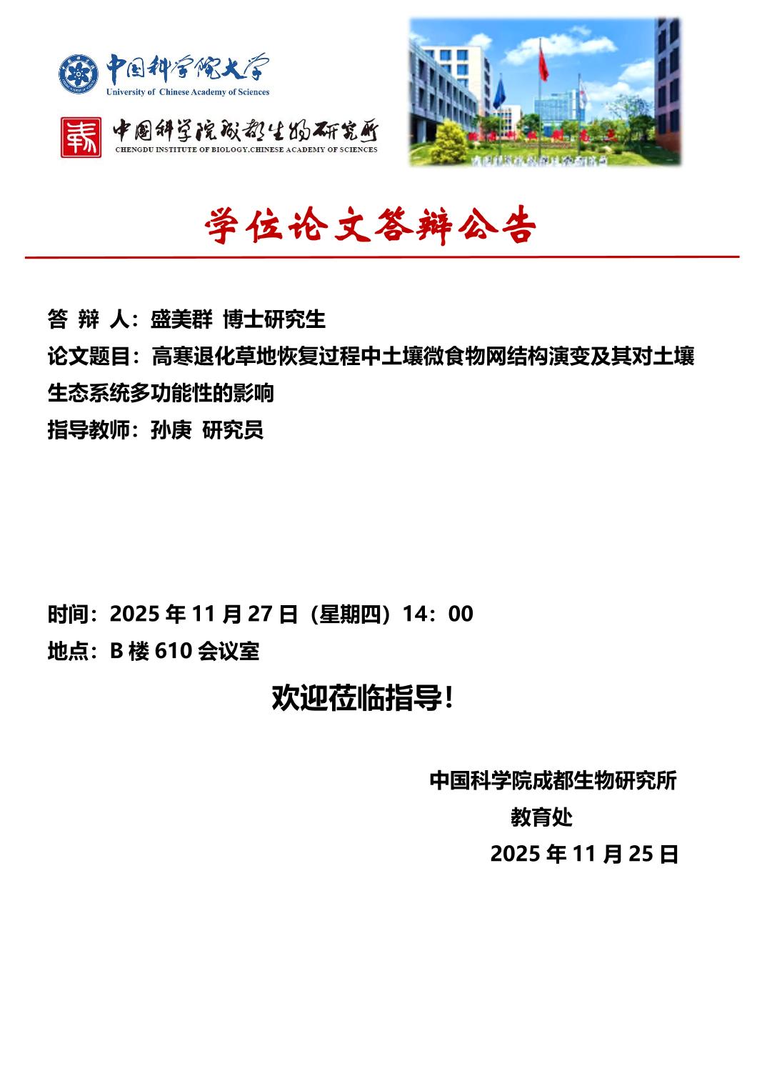 中国科学院成都生物研究所2026年“卓越计划”优秀博士生、硕士生专项