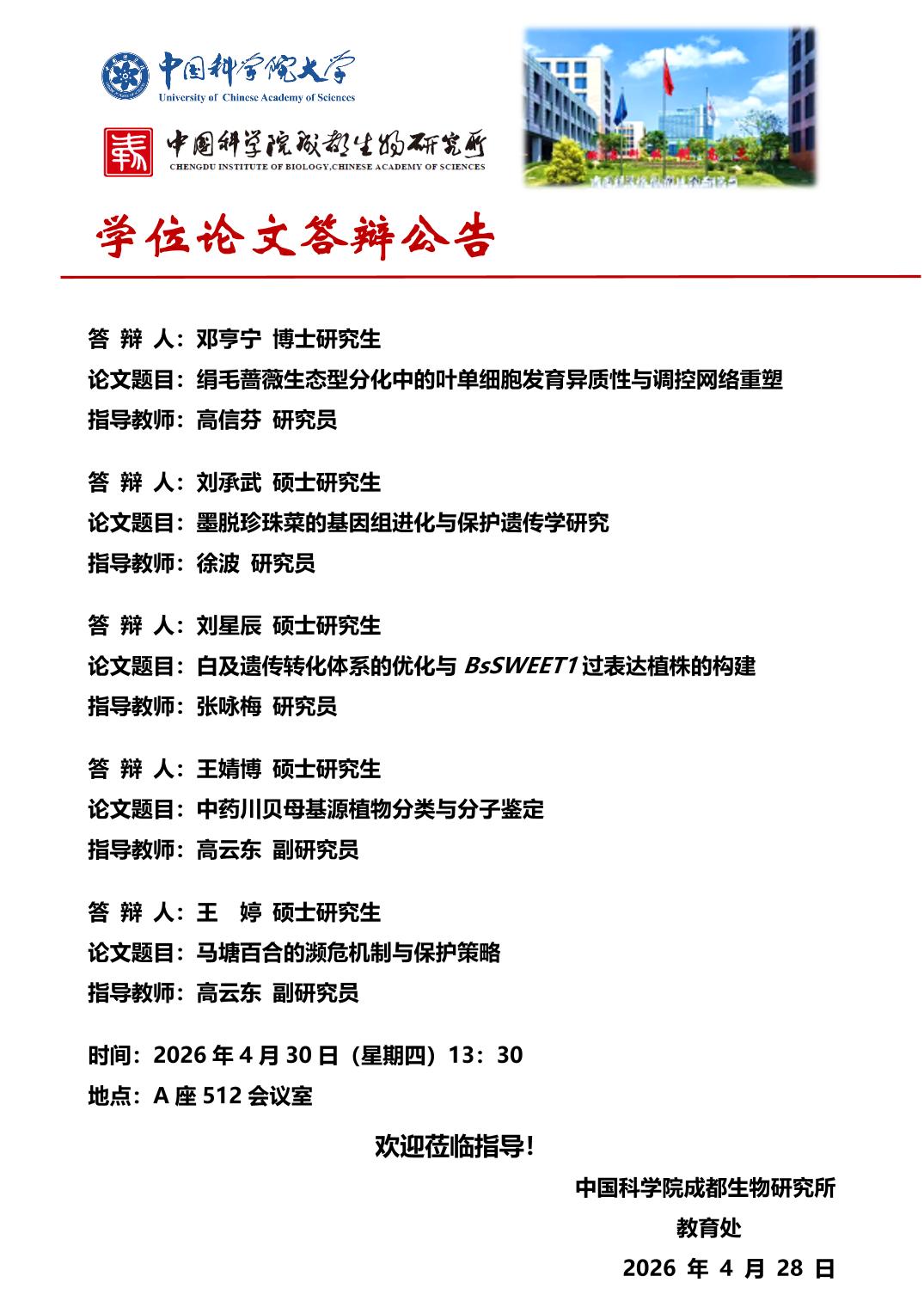 中国科学院成都生物研究所2026年度编制内科研岗位招聘启事