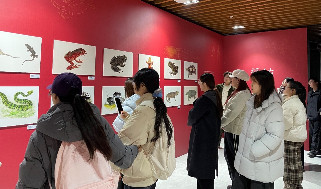 随后,同学们依次参观了“巳巳如意”主题特展与动植物标本馆。在讲解员李茂良的带领下,大家都沉浸在两爬动物生动有趣的形象与习性中。之后党员同志们参观了动植物标本馆。在这两部分参观过程中,同志们围绕展品内容、科学原理及个人见解展开了频繁而自发的交流,现场互动气氛热烈,实现了跨学科思维的碰撞。