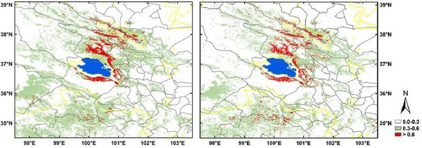 普氏原羚(Procapra przewalskii)是中国特有的濒危有蹄类,其已知残留种群仅分布在环青海湖地区。中国科学院成都生物研究所进化与保育研究团队胡军华博士与中国科学院动物研究所蒋志刚研究员领导的研究组应用生态位模型和地理信息系统(GIS)的空间分析工具,结合未来气候变化的不同大气环流模型和温室气体排放情景模式,研究了普氏原羚在未来不同年代气候变化背景下的分布区变化格局与濒危等级状况。同时,研究评估了气候变化下物种风险预测的不确定性。研究发现,普氏原羚将对未来气候变化非常敏感。随着时间推移,气候变化对普氏原羚适宜栖息地的影响程度将加剧。本研究为我们在不断加剧的全球变化下开展濒危物种保护提供了基础与实例,有利于进一步探索大尺度上生物多样性保护与全球变化研究。