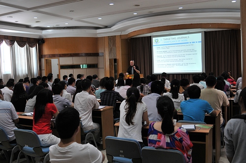 讲座由生态中心和情报中心联合主办,旨在为该所职工提供一个与国际期刊主编交流SCI论文写作与投稿发表的平台,100余名科研人员和研究生听取讲座。