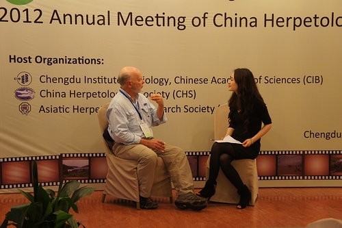 采访者:欢迎来到我们的节目!非常高兴见到您。您在世界两栖爬行动物领域有着德高望重的名誉,能够得到这次与您谈话的机会我感到万分荣幸。首先,您觉得这次会议的重大意义是什么呢?