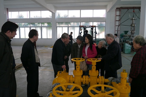 大家来到由退休职工戚怀福同志创办的成都孚吉科技公司,听取了公司发展概况介绍,并兴致勃勃地参观了生产车间、苗圃基地和成都温江金马国际马术体育公园。