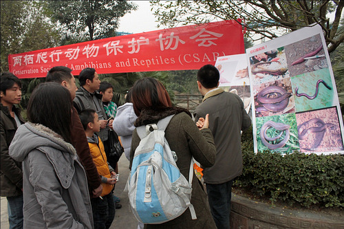 自2012年11月10日起,中科院成都生物所两栖爬行动物保护协会成员在两爬室丁利博士带领下,在成都市南湖梦幻岛丛林动物展馆开展了以“人类和蛇类和谐共处”为主题的《蛇年说蛇》系列科普活动。目前已进行了6期11场,涉及14个与蛇相关的话题。话题内容涉及“蛇”的各个方面,包括“什么是蛇”、“遇到毒蛇怎么办”和“我们身边的蛇”等专题。同时,在微博媒体上,也进行了大量网络《蛇年说蛇》的科普活动。