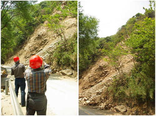 13:04分,根据从保护区获得的第一手资料,向灾情严重的地区进发,一路上滑坡点逐渐开始密集分布。