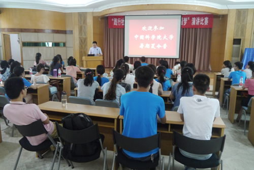 袁鹏介绍了中国科学院的历史沿革、科研人才和设备、科研成就以及“率先行动计划”等情况。介绍了中国科学院大学的历史沿革、研究生培养体制、培养目标、科研实践条件、师资队伍、校园基础建设、校园文化等情况,并与夏令营营员进行了互动,解答了营员们在国科大招生、培养等方面的疑问。袁鹏还为本次夏令营活动中涌现出的12名优秀营员颁发了荣誉证书。