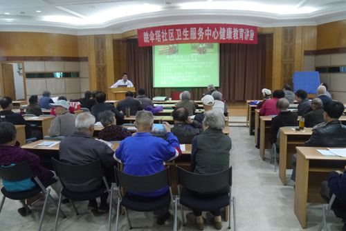 跳伞塔社区卫生服务中心的医生为到会离退休职工介绍了流感和普通感冒的病理及预防知识,讲解了骨质疏松症的诊断和治疗手段,还对今年职工体检报告中的有关问题进行了解答。