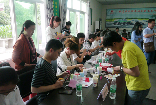 竞赛活动包含环境保护知识竞赛和“变废为宝——废弃物利用”作品制作比赛两个部分,各个工会小组分别派出职工代表作为参赛队员。知识竞赛以生活中的环保常识为主题,考察大家的环境保护意识;废弃物利用作品制作比赛是将一次性纸杯制作成灯笼,倡导变废为宝、循环利用、创意改变生活的主题,各参赛队员发挥聪明才智,现场手工制作出各式各样的灯笼,并向评委和观众进行了展示。科技处工会小组利用20多个纸杯制作成“天宫一号”灯笼,综合办工会小组精心准备,制作出“猴年送祝福”灯笼……经过两个环节的激烈比拼,综合办工会小组、农业中心工会小组、人事教育处和党群办联合工会小组分获前三名。