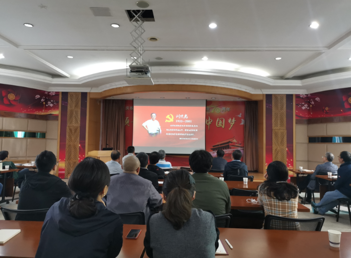 全体人员学习观看了党委办拍摄制作的视频“一所一人一事---刘照光先进事迹展示”。党委委员江建平、吴瑜、闫志英围绕会议主题和刘照光先生的事迹依次发言。