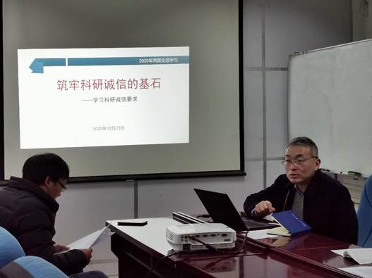 首先党委委员、副所长刘庆同志以讲党课的形式带领党员们学习了科研诚信要求,包括《关于科研活动原始记录中常见问题或错误的诚信提醒》、《科研诚信案件调查处理规则(试行)》等文件,并在学习过程中结合支部的实际情况和可能出现的潜在问题进行了分析和警示,党员同志就党课学习结合自身业务工作进行了充分讨论。