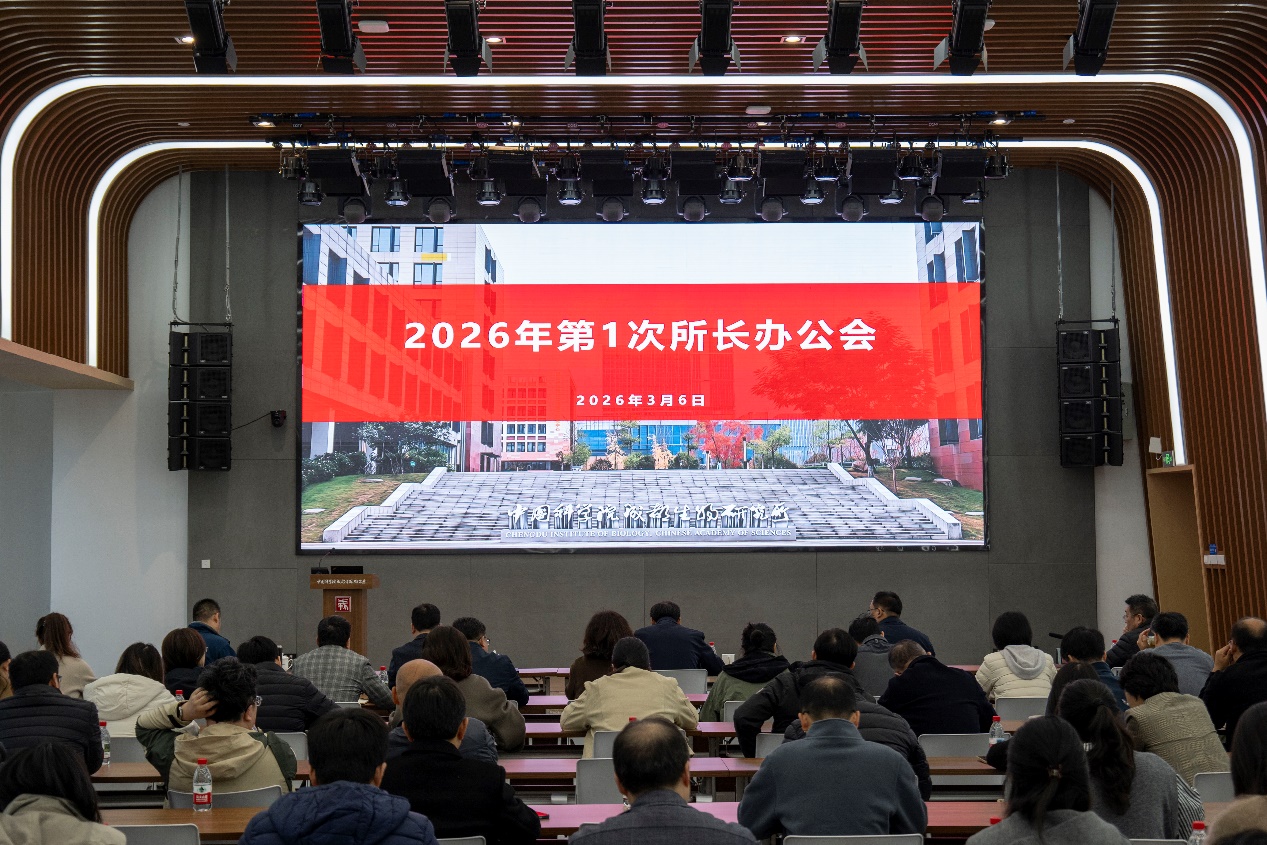 3月6日,中国科学院成都生物研究所召开2026年第1次所长办公会,部署2026年研究所重点工作。会议由所长李家堂主持,所领导班子成员、各部门负责人、创新团队组长和管理部门全体成员参会。