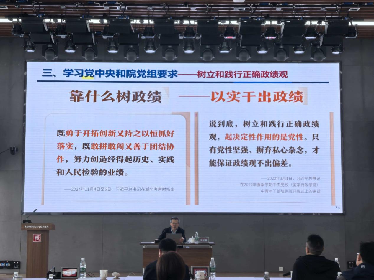 本次培训特邀中国科学院西北生态环境资源研究院党委书记、副院长张长春进行首期专题授课。他以《树立和践行正确政绩观,提升组织力战斗力,为抢占科技制高点提供坚强保障》为题,紧密结合当前国际形势与全球科技创新发展态势,深入解读党中央重大决策部署和院党组工作要求,系统阐述了正确政绩观的深刻内涵与实践要求,并结合科研管理实际提出加强和改进工作的具体建议。授课内容既有理论高度,又紧贴管理实际,让参训人员深受启发、受益匪浅。