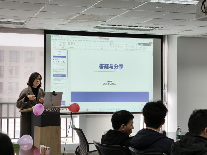 活动伊始,教育处张宁轩以“答疑与分享”为题,围绕学业规划、师生关系与心理调适进行解惑,鼓励同学们在科研道路上以终为始、学会求助与协作。创新团队负责人李东老师作《心·天·地》主题分享,从“立心、望天、脚踏实地”的成长路径谈科研初心、学术品格与长期主义,勉励同学们在国家需求与个人兴趣的交汇处深耕不辍。