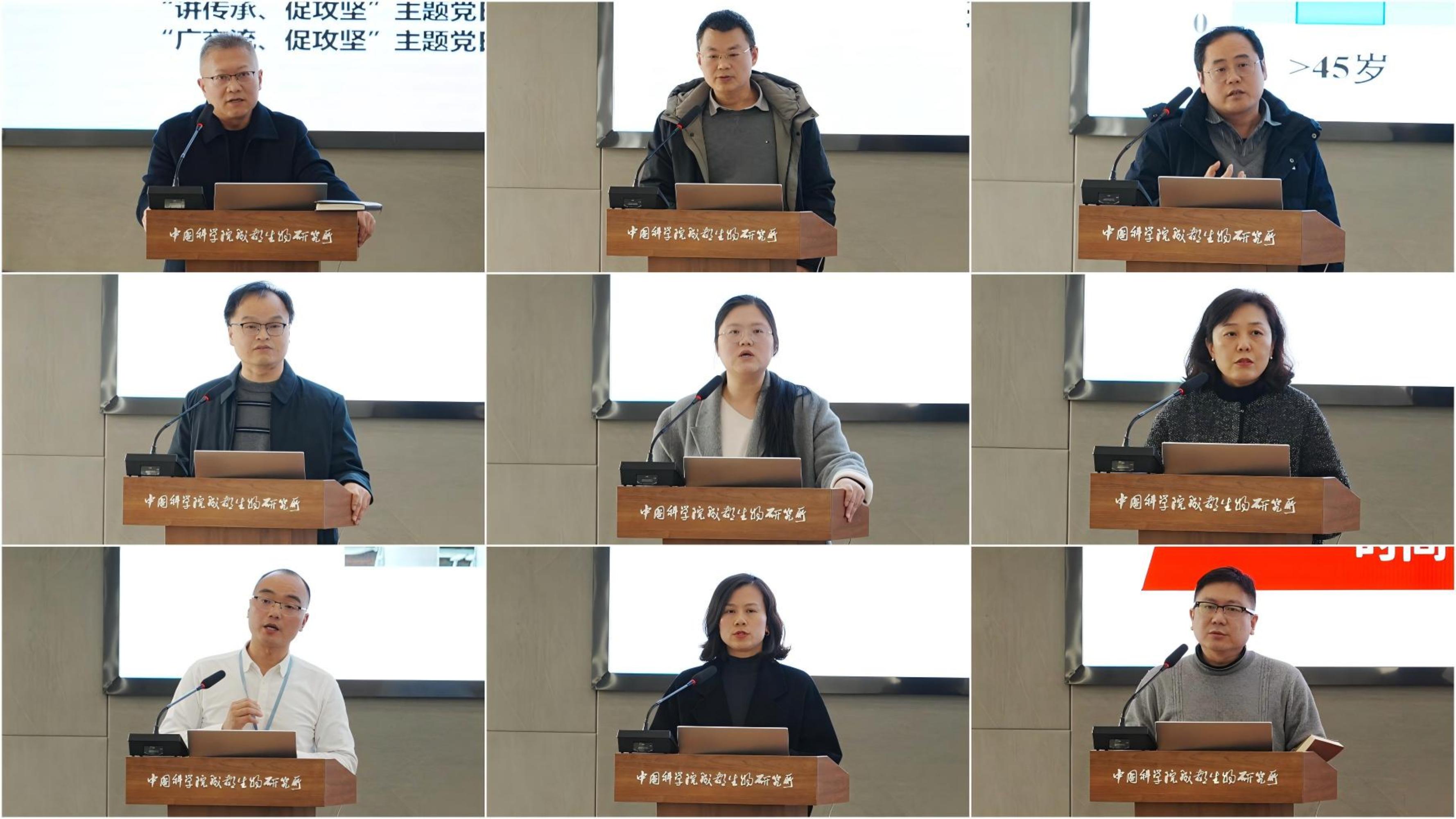 述职评议环节,在职党支部书记依次述职,紧扣“党建与业务融合”核心主题,结合党支部工作实际,全面汇报了2025年度在强化理论武装、落实组织生活、推动重大项目攻关、破解发展难题、服务人才引育等方面的工作进展,并提出下一步重点工作思路。此后,研究生及离退休党总支分别作2025年度工作报告。